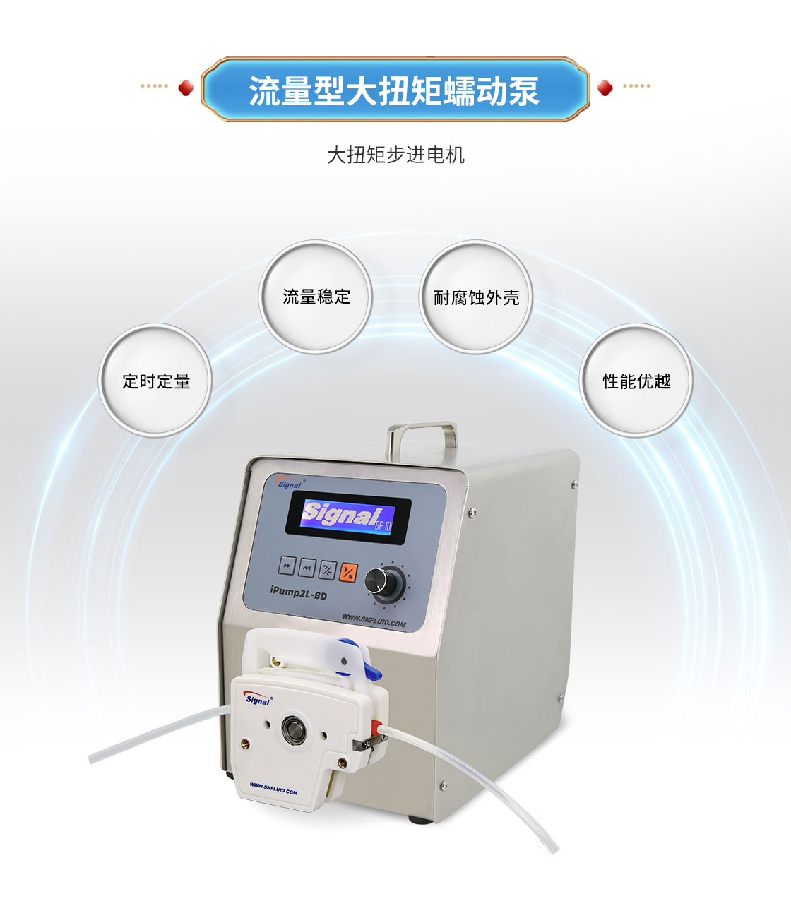 2.大扭矩步進電機驅動,適合多泵頭串聯使用;